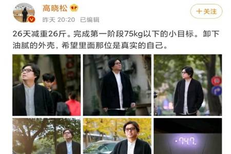 近日,高晓松在个人社交平台上晒出自己的近照,表示自己在26天里减重26斤,完成75kg以下的小目标。见状后,不少网友都惊呆了,纷纷质疑这还是我认识的高晓松吗?