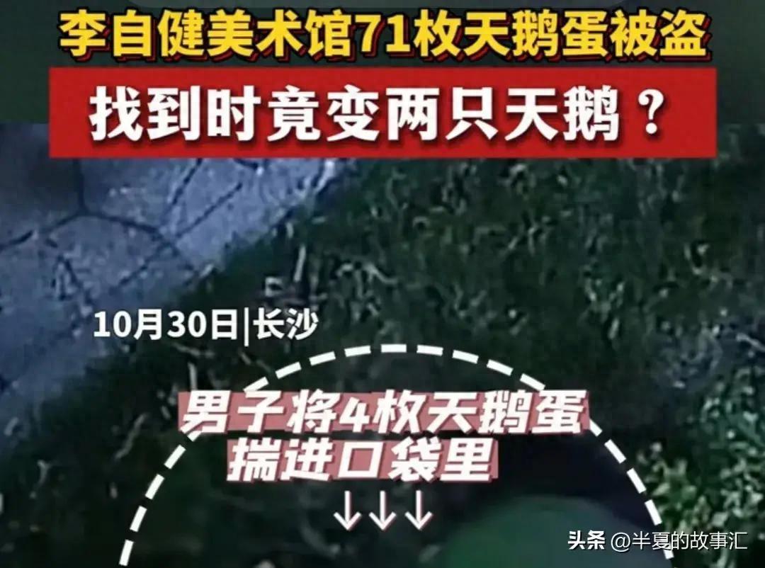 10月30日晚19时00分左右,一名男子趁着天色进入湖南省长沙市李自健艺术馆黑天鹅筑巢孵化区。 他把许多正在孵化的天鹅蛋用衣服包裹起来,趁天黑偷走了它们。 整个盗窃过程只用了不到30秒。