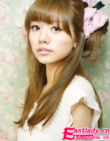 发型分析:这款发型DIY真是超简单,需要用到一个粉色的发圈,最好发饰是属于田园风,的,那就可以完成这个简单实用的公主头。