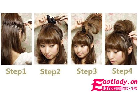 STEP1:先将头发扎高,尽量理顺,头型要整理好。