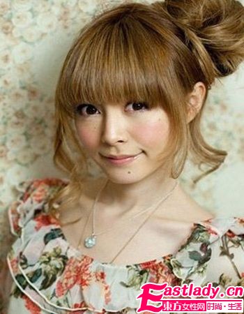 发型分析:丸子头一直都很流行哦,可以随意的加入自己的想法,做个属于自己的特色丸子头,这个丸子头拥有田园般的清新,浪漫自然。